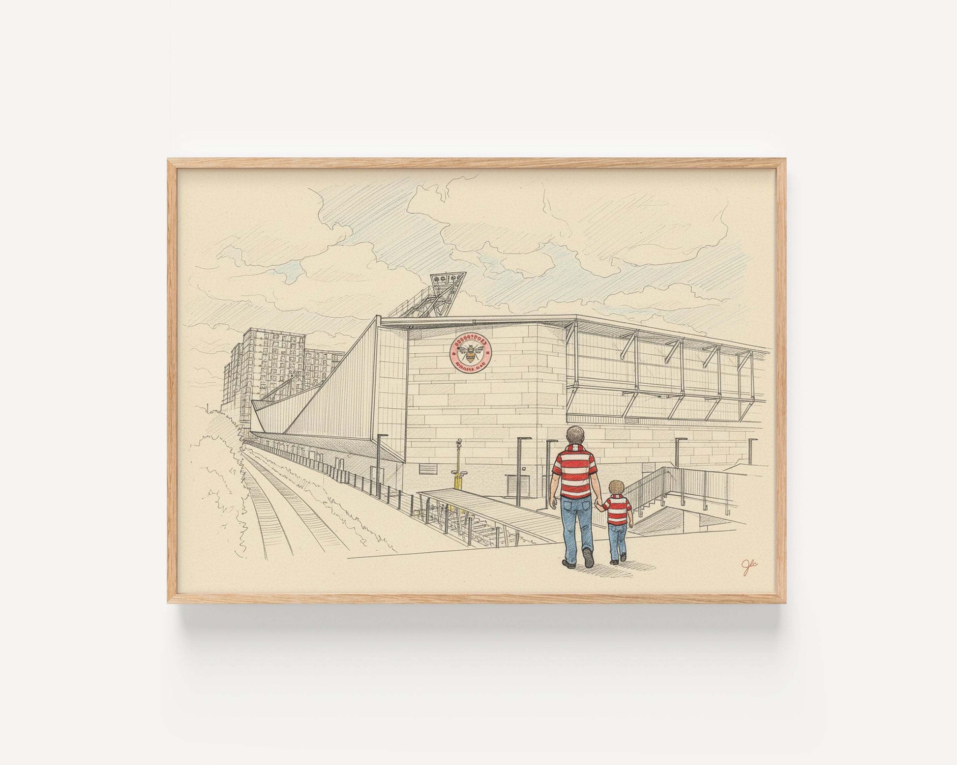 Beautifully illustrated and printed on high quality matte fine art paper, every detail - from the stadium's modern design to the father and child in Brentford colours - celebrates football's power to unite generations and inspire community pride. Each print is meticulously checked by hand in our family-run studio, ensuring every Bees fan receives a piece worthy of their club.