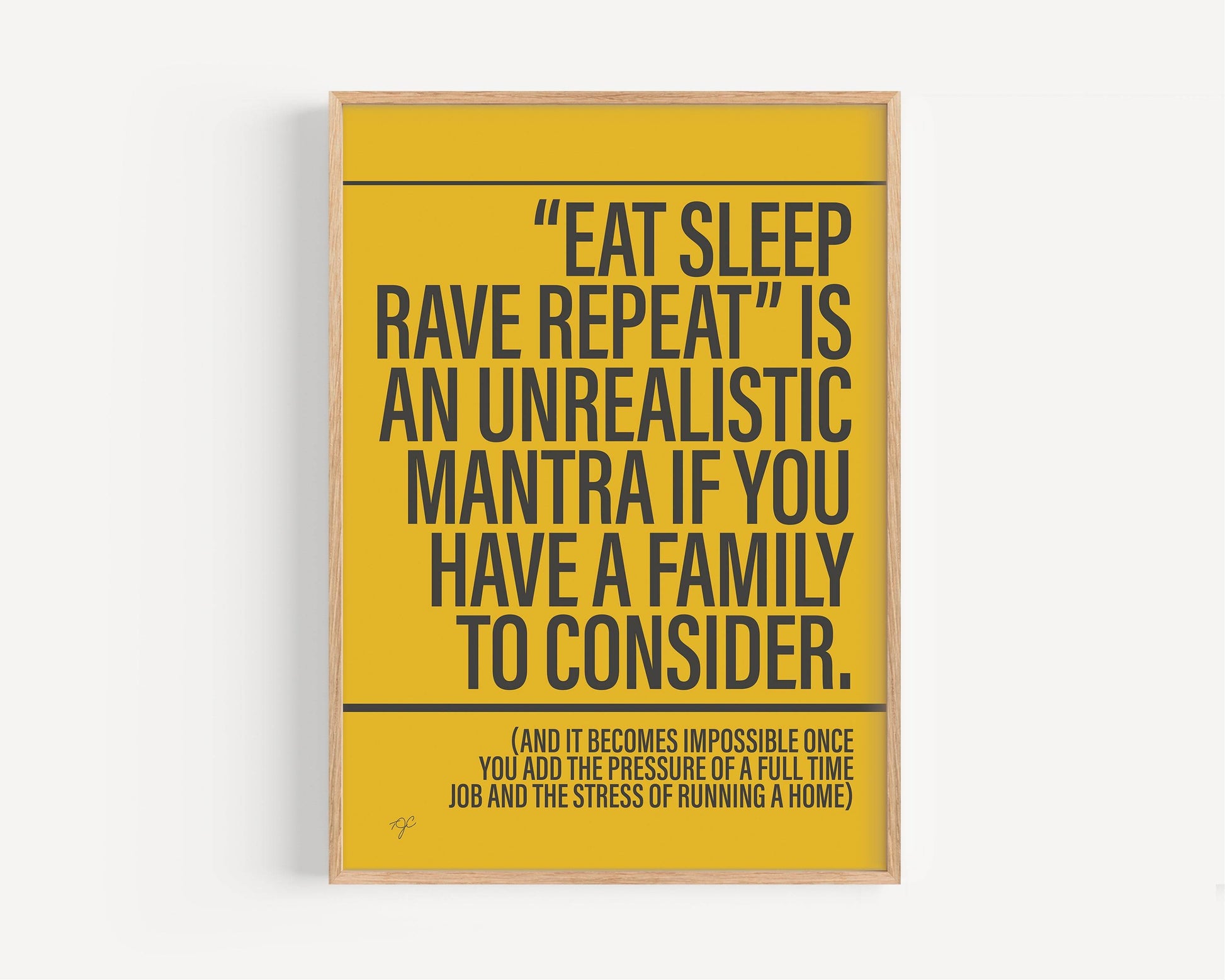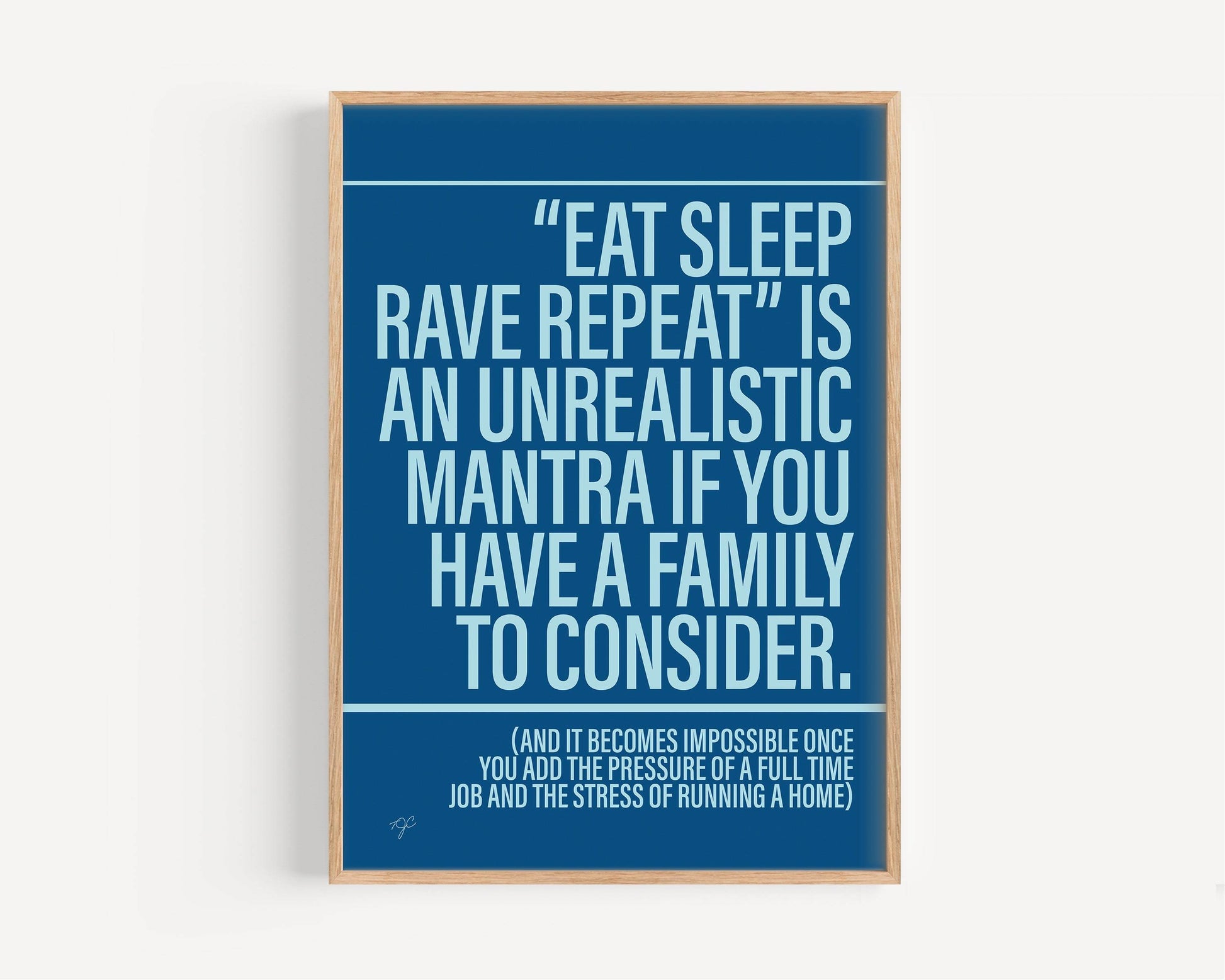 Make yourself and others smile with printed wall art from Striped Circle and add this Eat Sleep Rave Repeat print to your wall today.