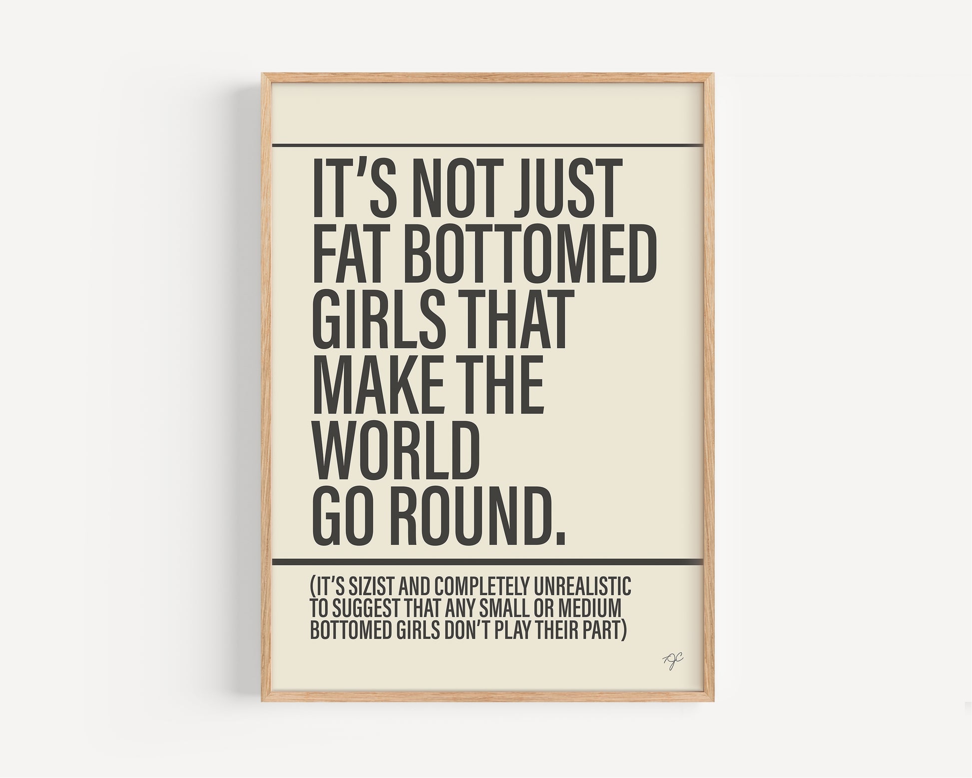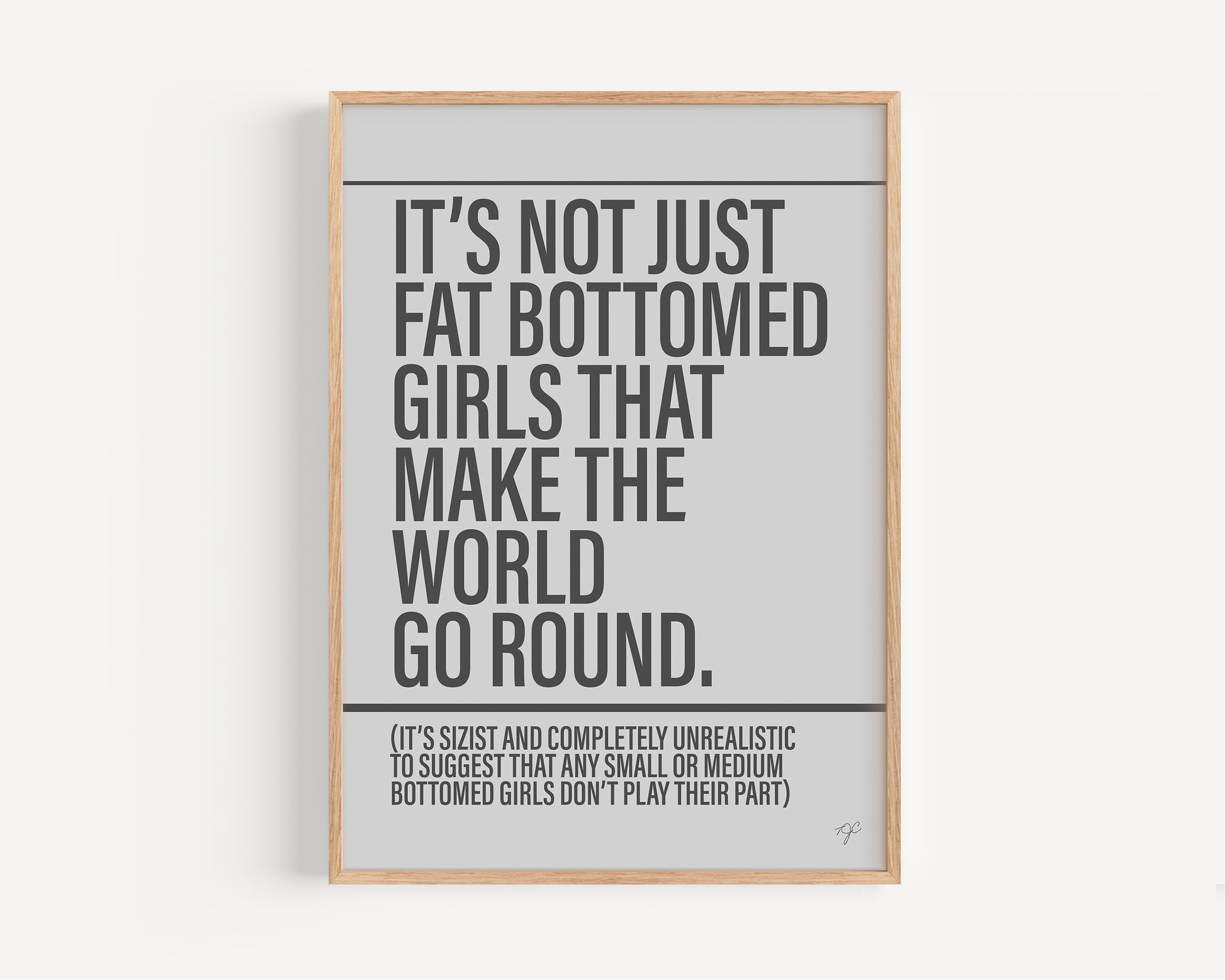Make yourself and others smile with printed wall art from Striped Circle and add this FRAMED Fat Bottomed Girls print to your wall today.