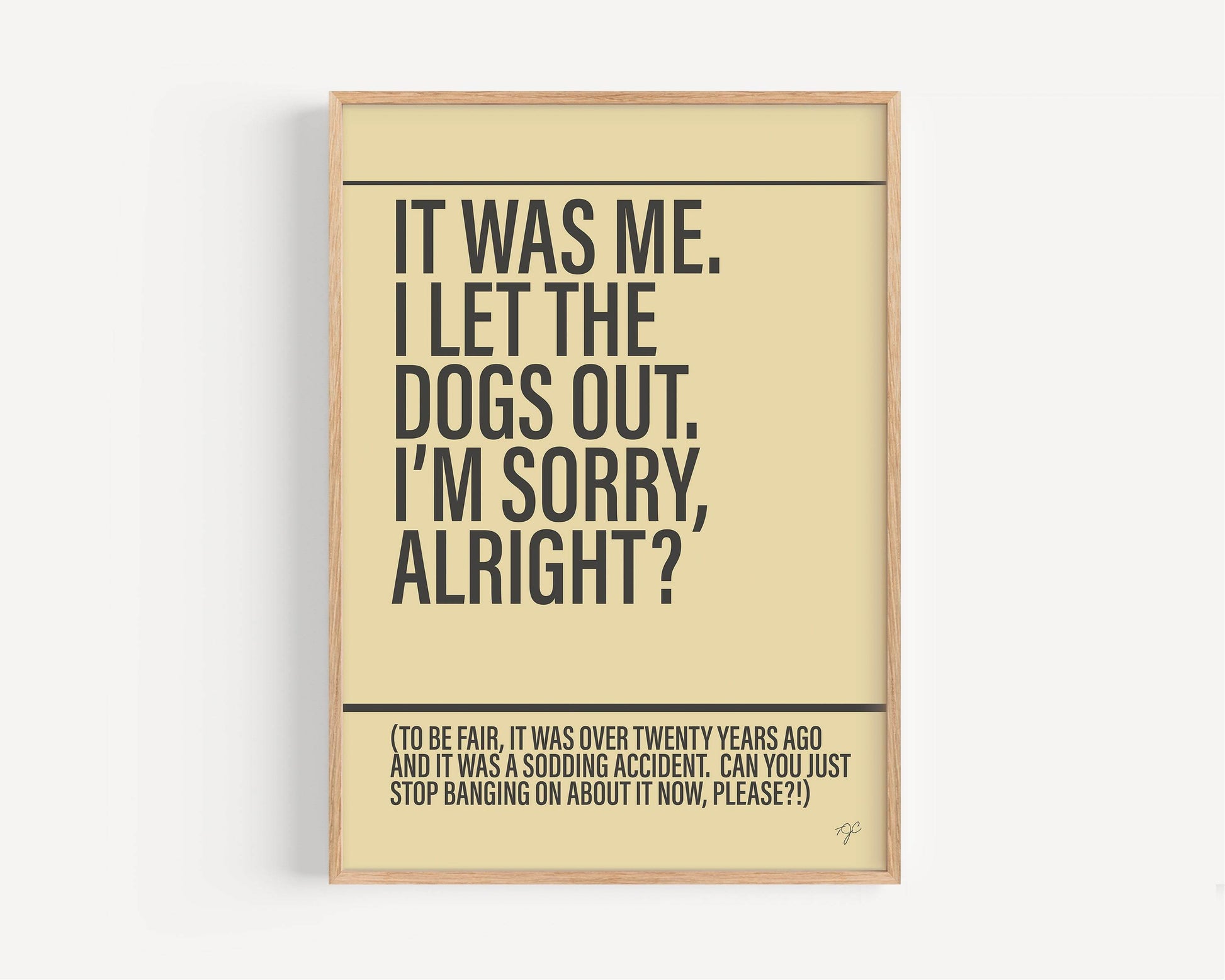 Make yourself and others smile with printed wall art from Striped Circle and add this I Let The Dogs Out print to your wall today.