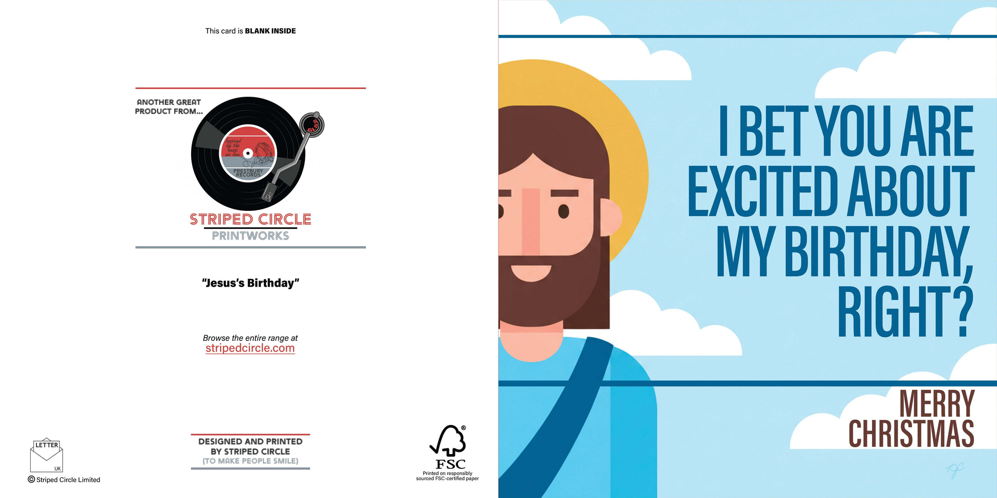 Striped Circle greeting cards are available in one size and are all left BLANK INSIDE so that they can be used for any occasion. Inspired by our unique music-inspired art prints, we hope these greeting cards will bring a smile to the face of whoever you send them to.
