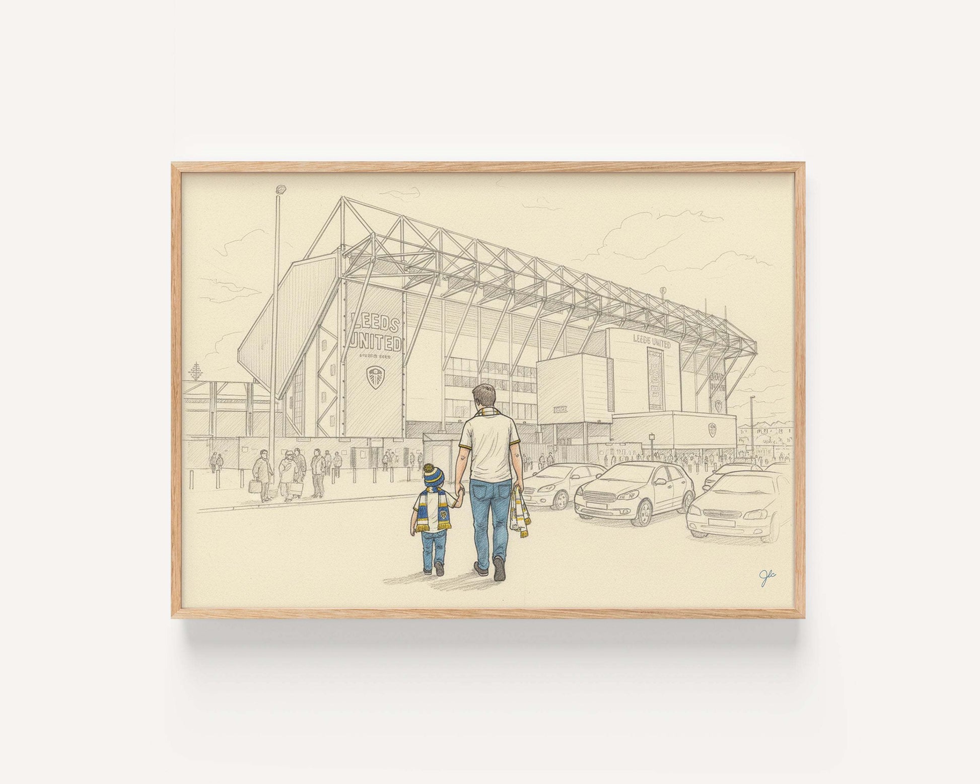 Beautifully illustrated and printed on high quality matte fine art paper, every detail - from the iconic stands to the father and child in Leeds colours - celebrates football's power to bring families closer and inspire lifelong loyalty.