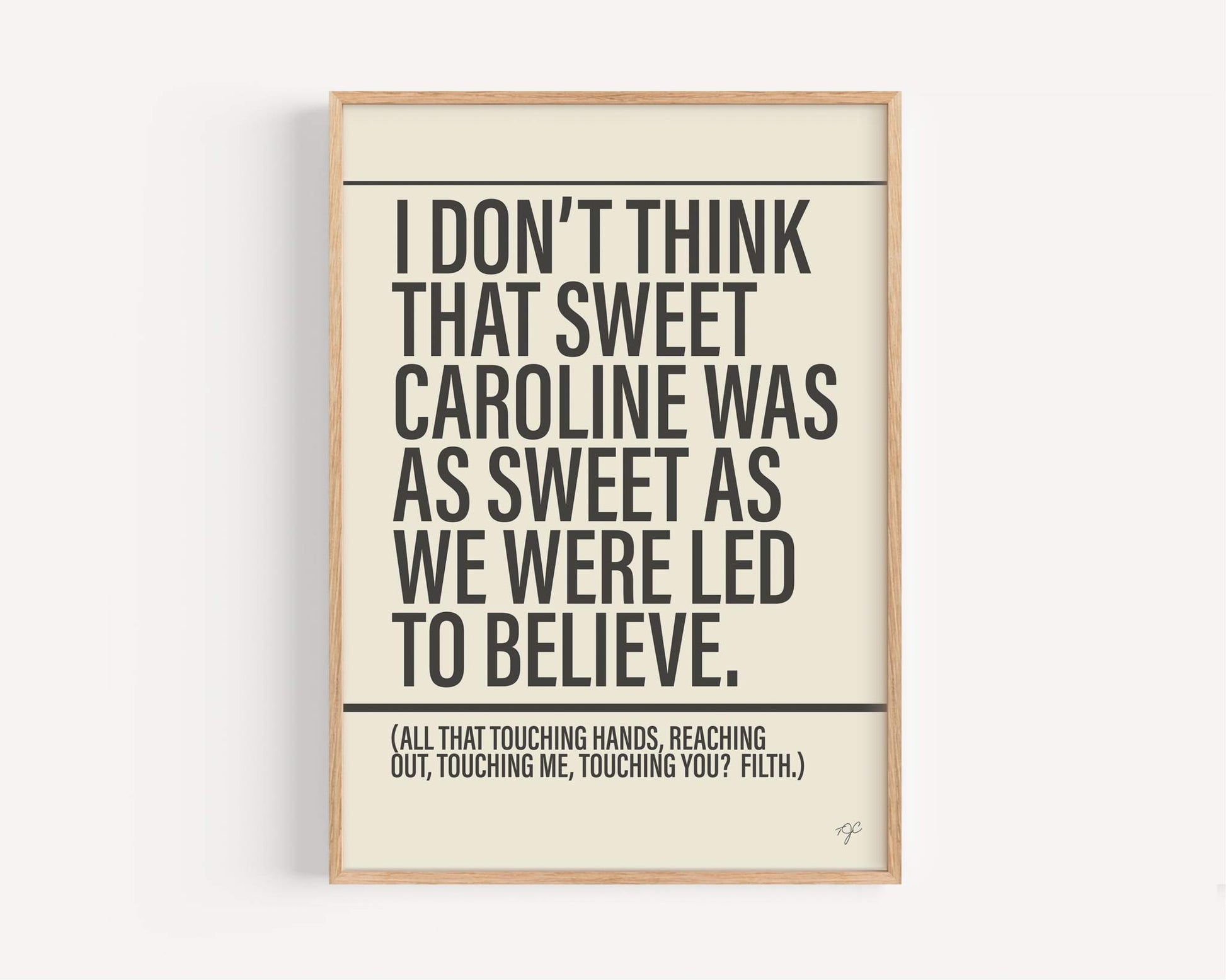 This Sweet Caroline print is dedicated to all those people called Caroline; sweet or otherwise.